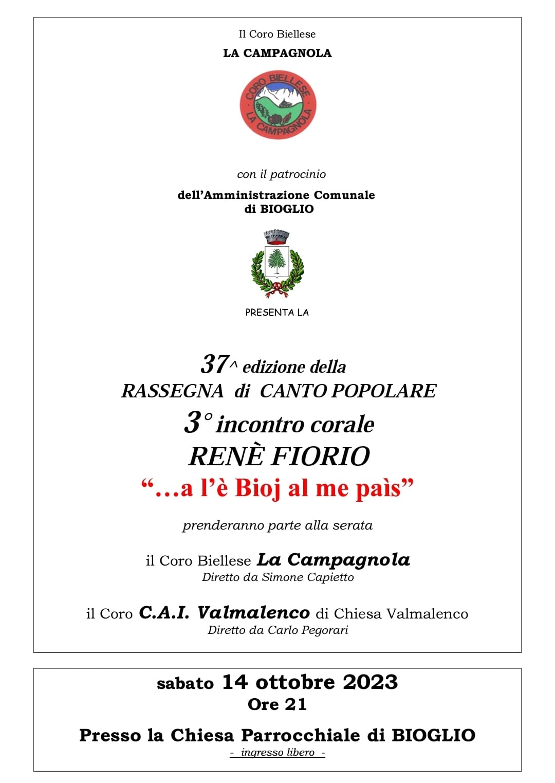 37^ edizione della RASSEGNA di CANTO POPOLARE 3° incontro corale RENÊ FIORIO .a l'è Bioj al me pais"