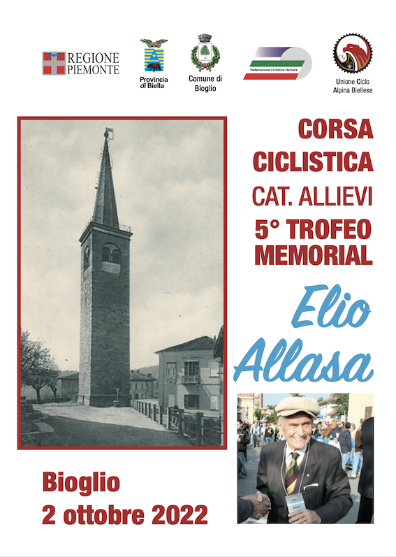 Ultimo appuntamento su strada della stagione domenica per il ciclismo laniero. Va in scena a Bioglio il memorial Elio Allasa, giunto alla 5ª edizione. La corsa per la categoria allievi ricorda la figura di uno dei più importanti dirigenti che il ciclismo biellese abbia avuto. Ad organizzare è l’Ucab di Biella, all’ennesimo appuntamento della sua lunga stagione. I chilometri di corsa saranno 76,2, prevalentemente su un circuito di 4,5 chilometri da ripetere ben 14 volte: l’anello sarà quello attorno a Valdengo con lo strappo della chiesa. Poi finale con la salita verso Bioglio, con un primo passaggio sotto lo striscione d’arrivo, infine Valle San Nicolao, Piatto e Bioglio ancora con il traguardo. Via ufficiale da Valdengo (trasferimento da Bioglio di 5,1 chilometri). Il percorso è completamente rivisto rispetto alle ultime edizioni a causa dei lavori sulla strada che collega Valle San Nicolao a Valdilana. Al via dovrebbero esserci un centinaio di corridori provenienti da Piemonte, Lombardia, Liguria, e Trentino. Al via anche gli allievi dell’Ucab Biella. L’anno scorso vinse Filippo Omati del Vc Pontenure. Il ritrovo è fissato per le 8 all’area festeggiamenti La Valentina di Bioglio, alle 9 la presentazione le 10 la partenza con l’arrivo previsto attorno alle 12. Alle 13 le premiazioni.