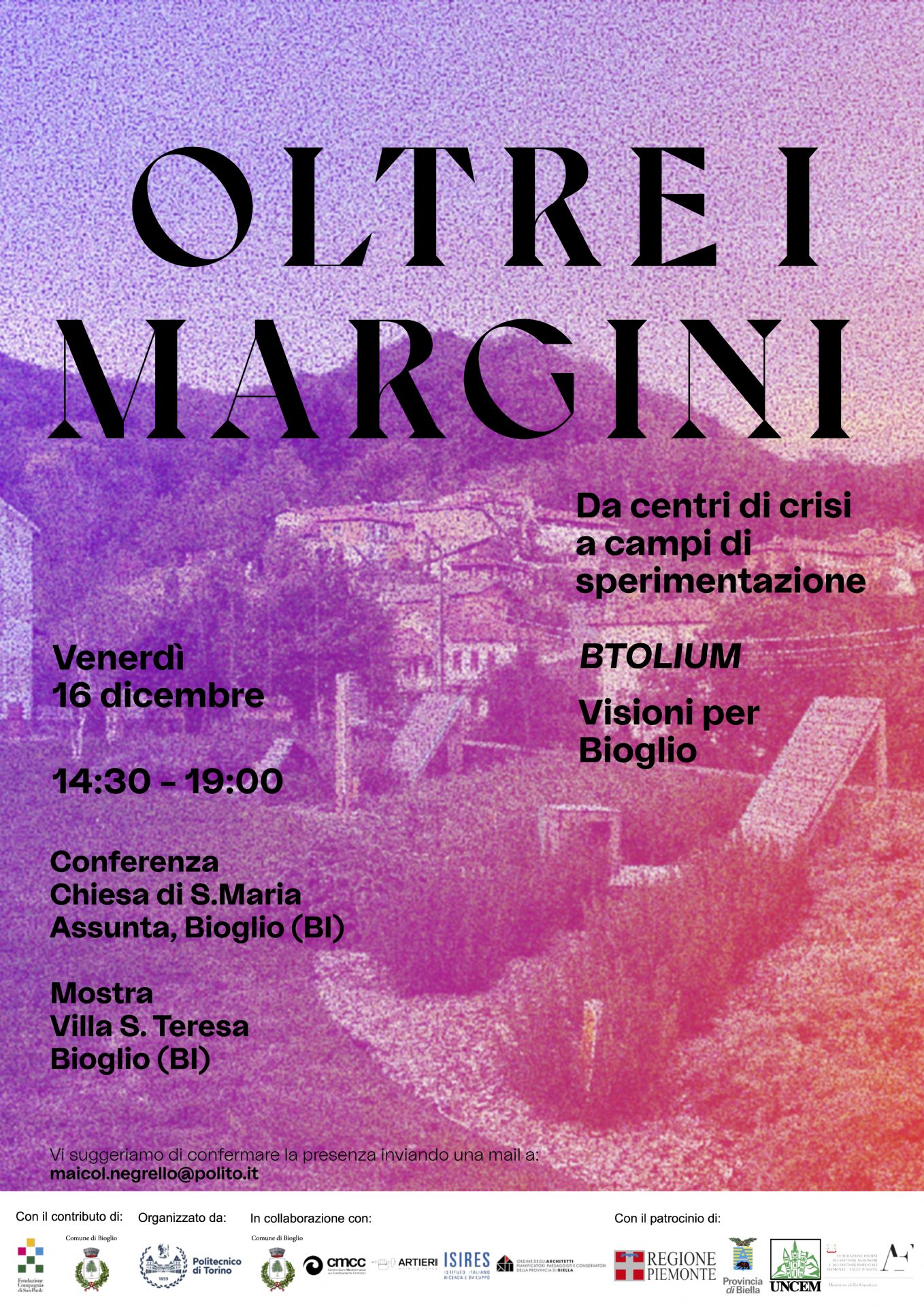 di Torino, Centro Euro-Mediterraneo per i Cambiamenti Climatici, Istituto Italiano Ricerca e Sviluppo, Associazione Artieri grazie ai contributi di Compagnia di San Paolo e del Comune di Bioglio.