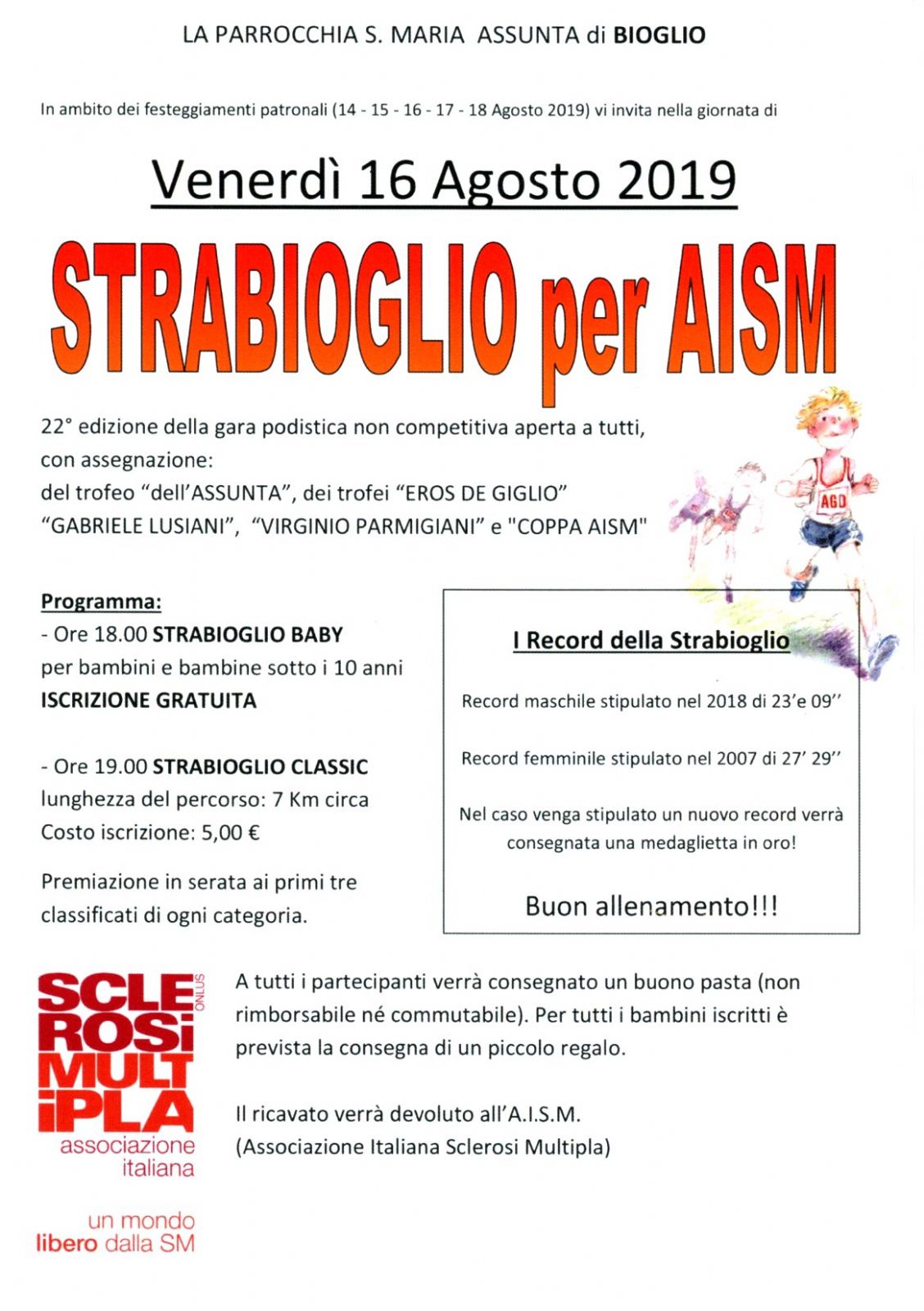 Cari sportivi vi invitiamo a partecipare numerosi alla 22°edizione della strabioglio . si allega volantino dettagliato