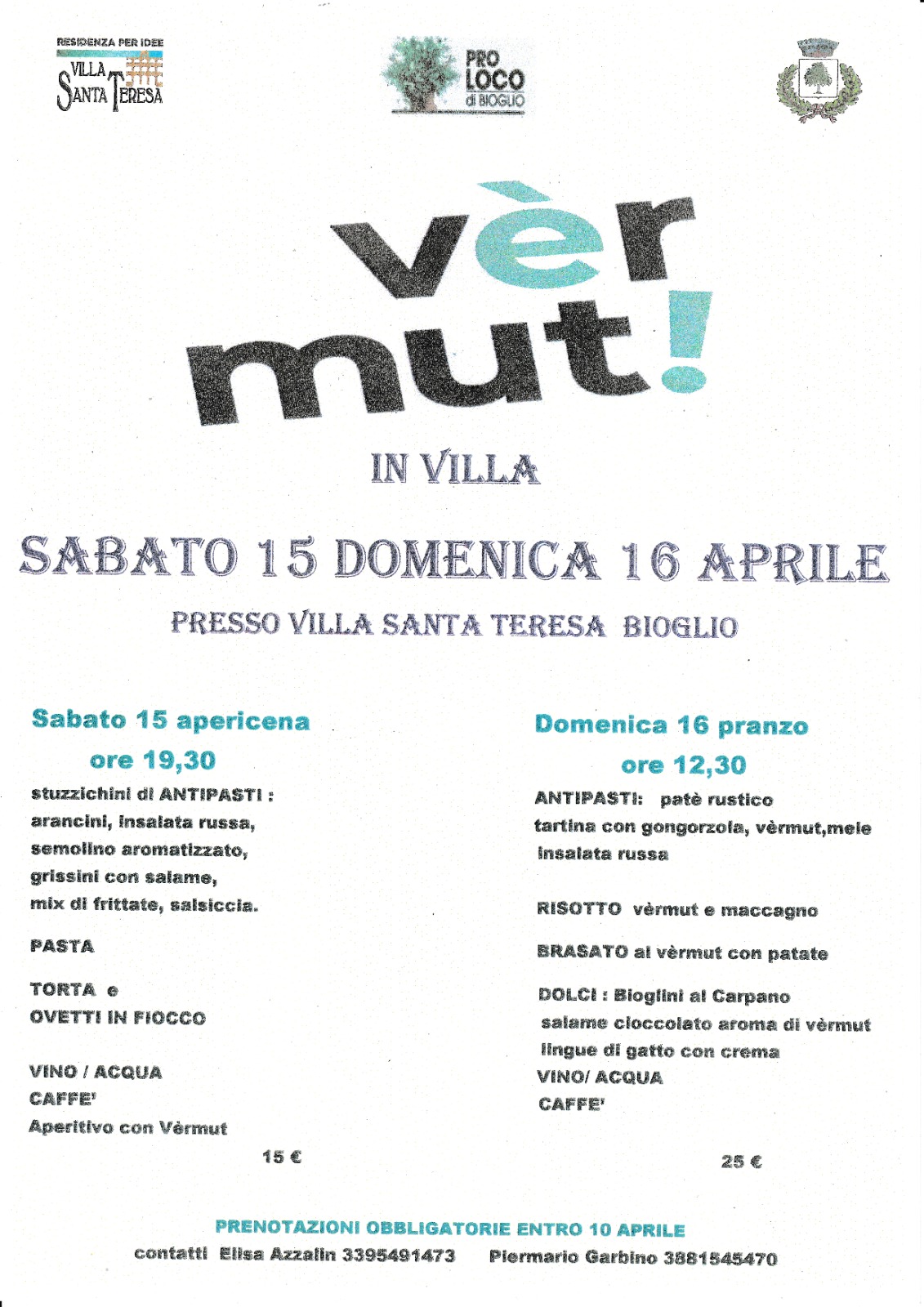 Giusto il tempo di riprendere e il 15 e 16 aprile avremo il ritorno in grande stile di Villa santa Teresa che accoglierà Vermut! Due giorni all’insegna dello stare insieme, del gustare del buon cibo e del condividere uno spazio bello del nostro paese.