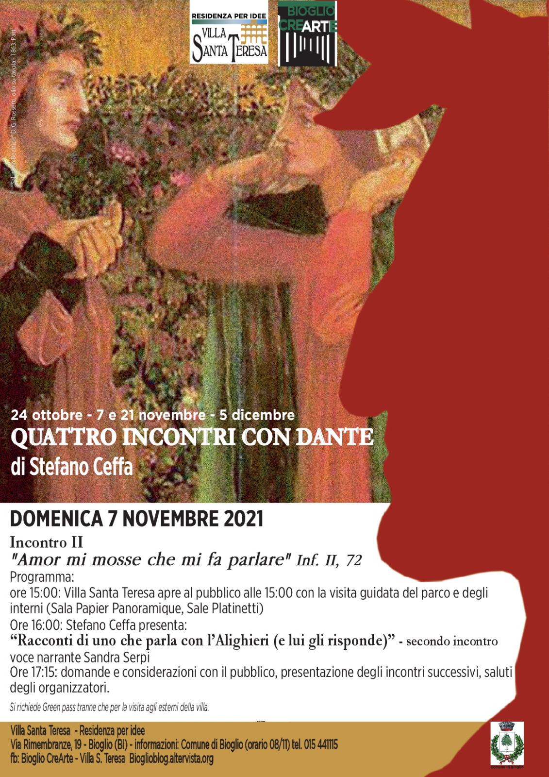 Per il ciclo di incontri "Vi presento il mio amico Dante" Villa Santa Teresa e BioglioCreArte presenta la lettura e il commento dei primi tre canti dell'Inferno.