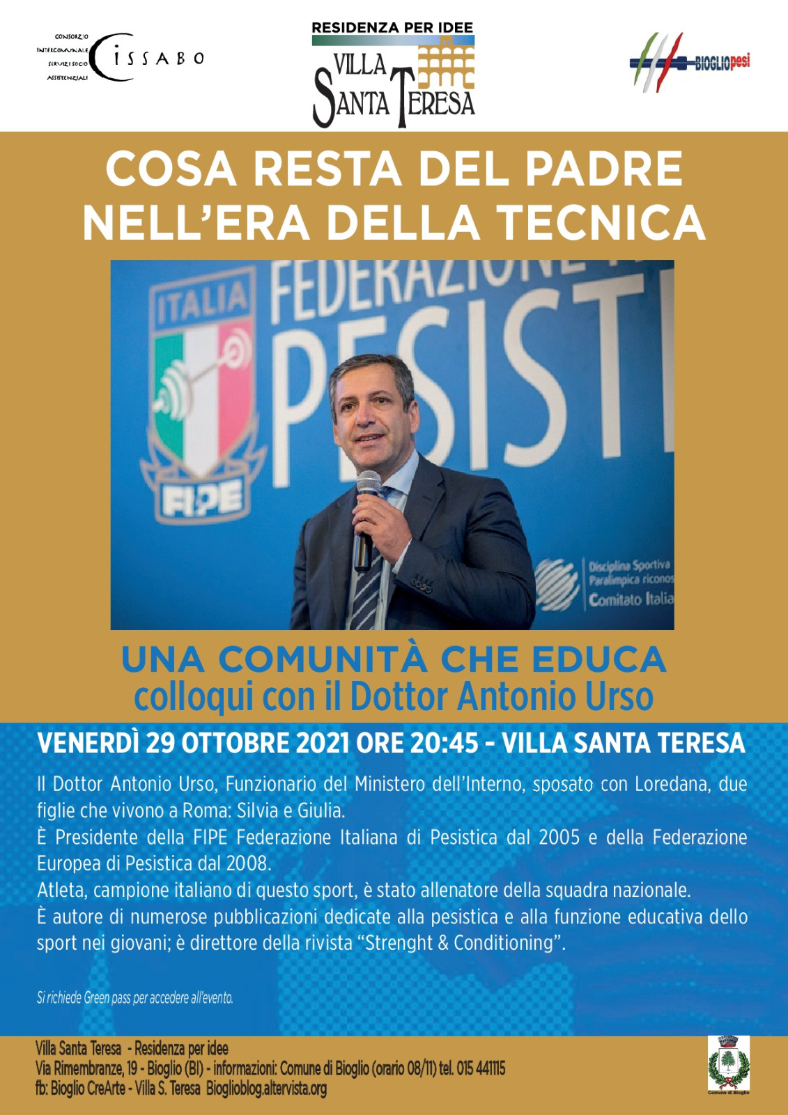 La serata è proposta da Villa Santa Teresa, Bioglio CreArte, Comune di Bioglio, Parrocchia di Bioglio, Bioglio Pesi e consorzio CISSABO.