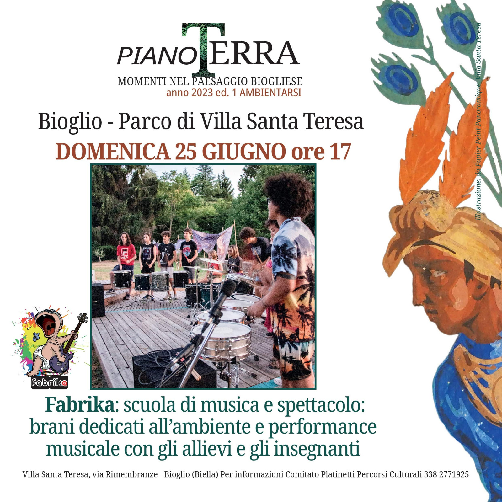 Fabrika, scuola di musica e spettacolo, presenterà brani dedicati all'ambiente e performance musicale con gli allievi e gli insegnanti.