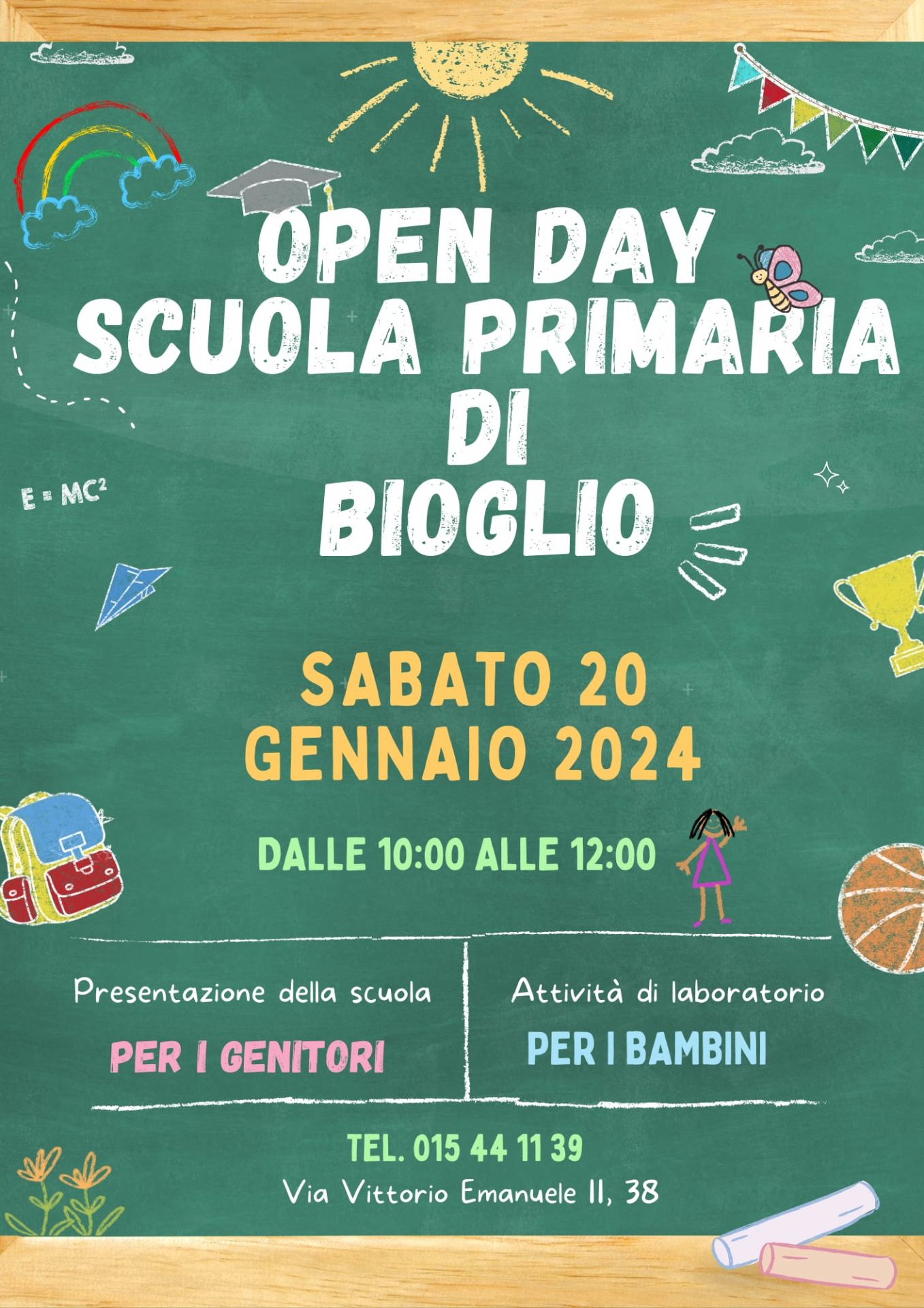 Sabato 20 gennaio 2024 le Scuole di Bioglio aprono le porte a tutti coloro che vorranno visitarle! In particolare sono invitati tutti i genitori e i bambini in età scolare ed in modo ancor più particolare quelli che entreranno in prima il prossimo anno.