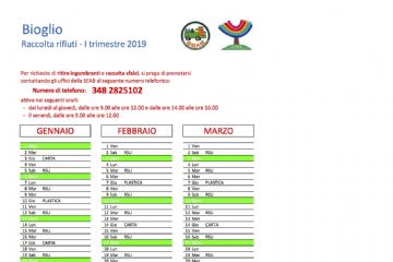 Calendario 2019 per la raccolta differenziata - primo trimestre