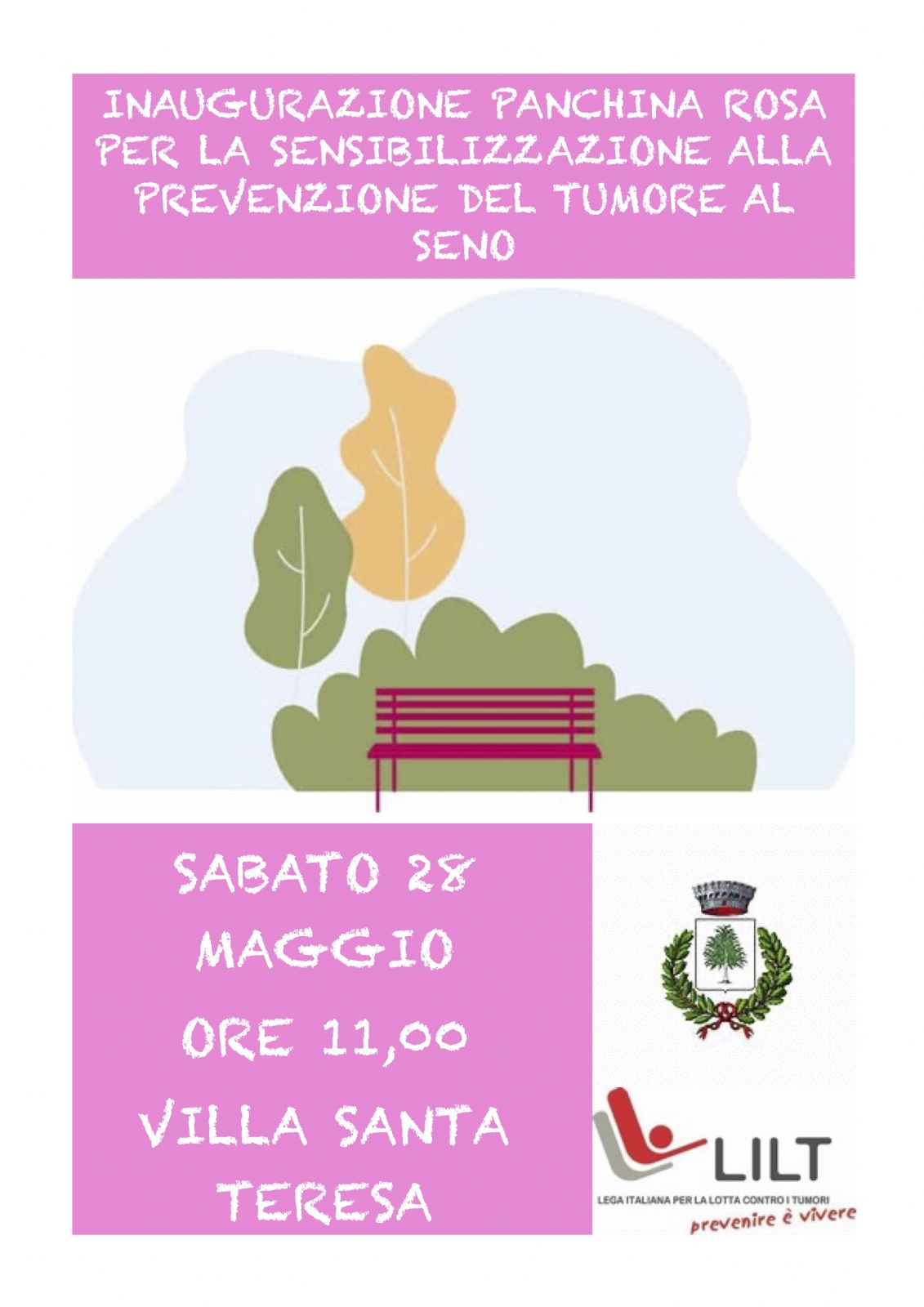 Nell'ambito dell'Inaugurazione del nuove Centro Servizi NET-CARE nella giornata di Sabato 28 Maggio alle ore 11,00 verrà inaugurata anche la prima "Panchina Rosa" nel nostro paese.