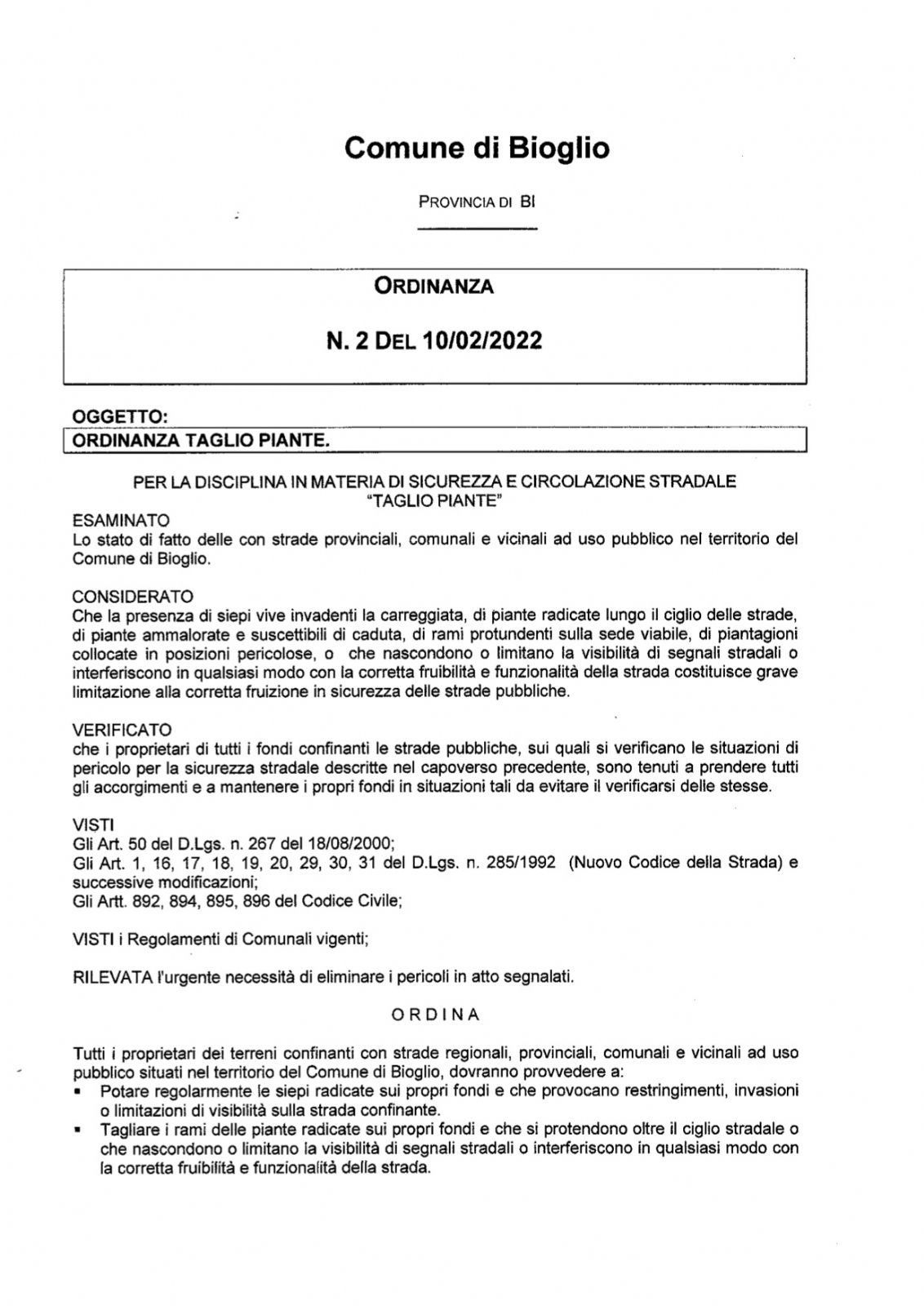 Si prega di prendere nota dell'ordinanza emessa relativa all'abbattimento di piante e arbusti.