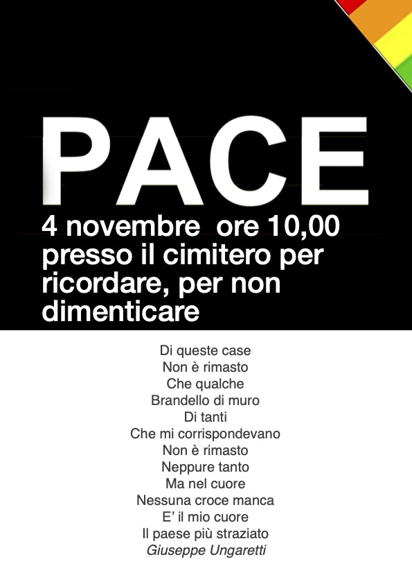 Nella giornata del ricordo delle Vittime di tutte le guerre e delle Forze Armate ci troveremo alle 10,00 presso il monumento ai caduti per la commemorazione.