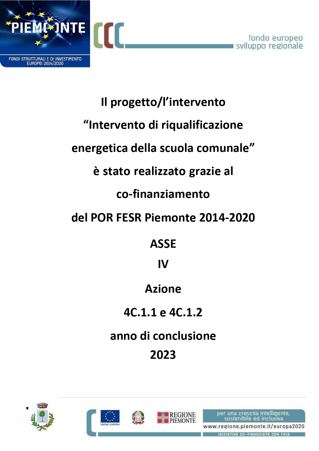 l'intervento è stato realizzato grazie al co-finanziamento del POR FESR Piemonte 2014-2020 ASSE IV Azione 4C.1.1 e 4C.1.2 anno di conclusione 2023”