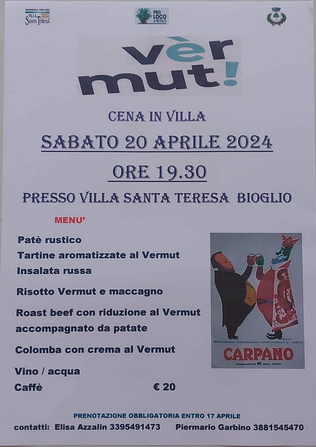 sabato 20 aprile alle Ore 19,30 presso la Villa Santa Teresa ricordiamo il nostro concittadino Antonio Benedetto Carpano inventore del Vermut!