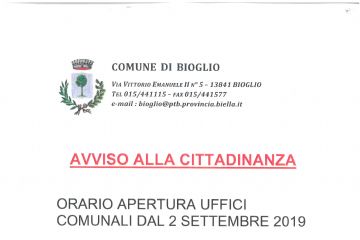Avviso nuovo codice I.B,A.N del comune di Bioglio